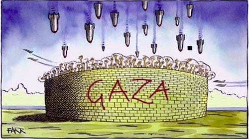 But the sight of so many world wide protests despite draconian restrictions in some countries, offers a glimmer of hope. Western hubris is becoming increasingly exposed. Perhaps we will see western leaders in the dock yet for their complicity in mass murder and genocide - if you believe in miracles.