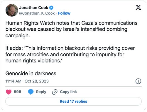 There is now a total blackout in communications, a perfect situation for ‘Genocide in darkness’ as Cook intimated in a tweet.
