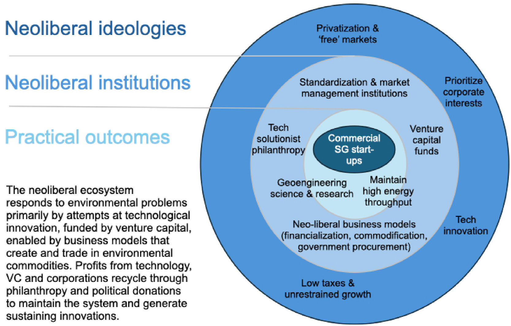 solar geoengineering is emerging within and perpetuating a neoliberal climate framework where direct “climate cooling” is poised to become just another ineffective climate commodity.